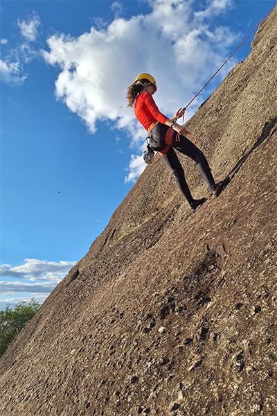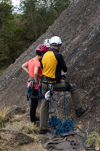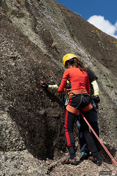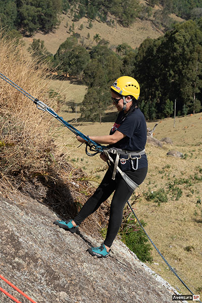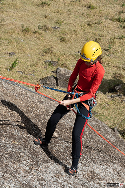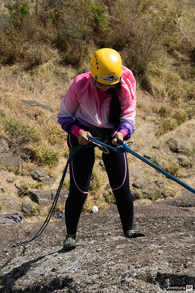 No modo prático, cada participante aplicará os procedimentos individualmente durante as descidas programadas, de acordo com o tempo disponível. As descidas serão feitas com auto-seguro, permitindo correções técnicas e evolução constante durante a prática.